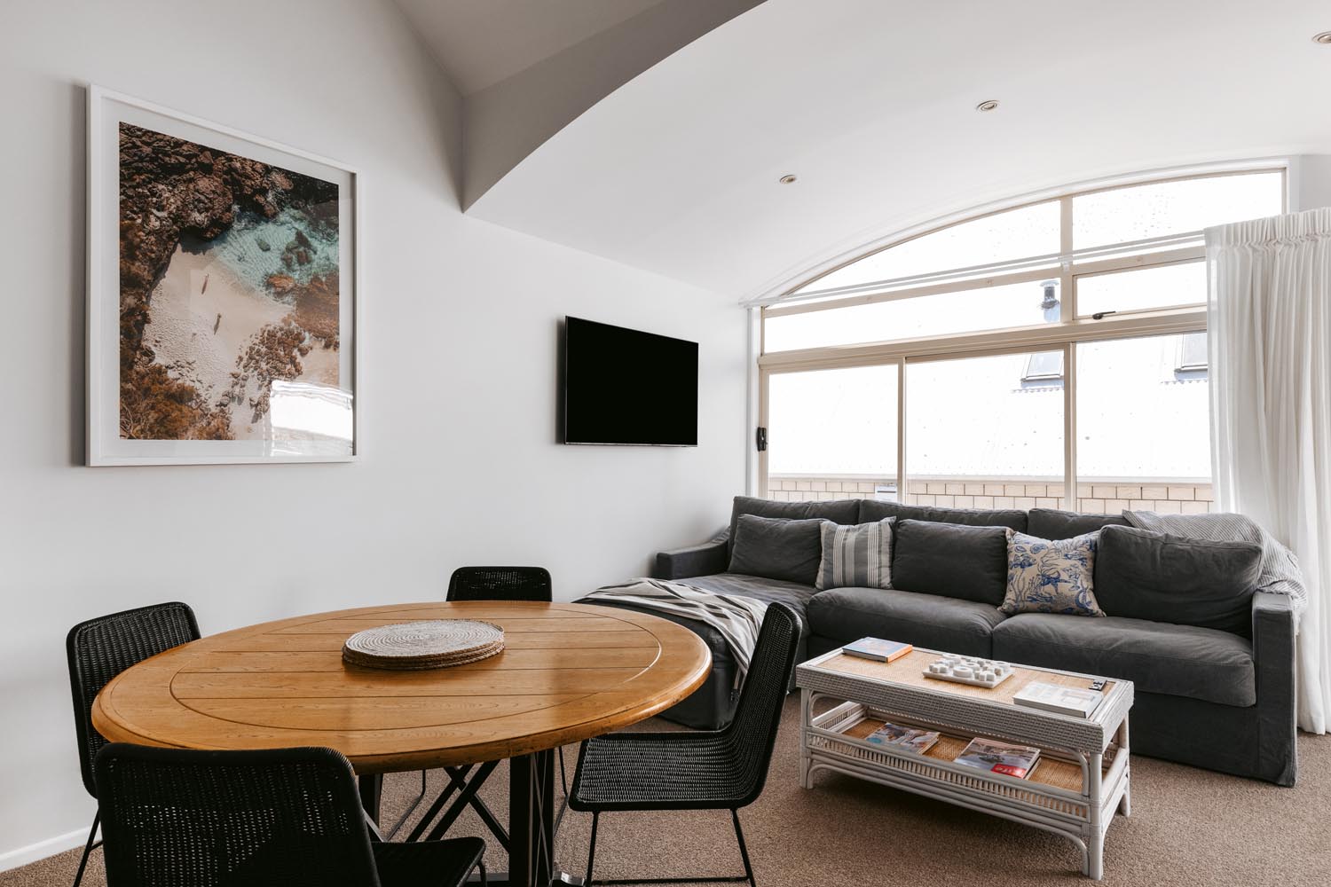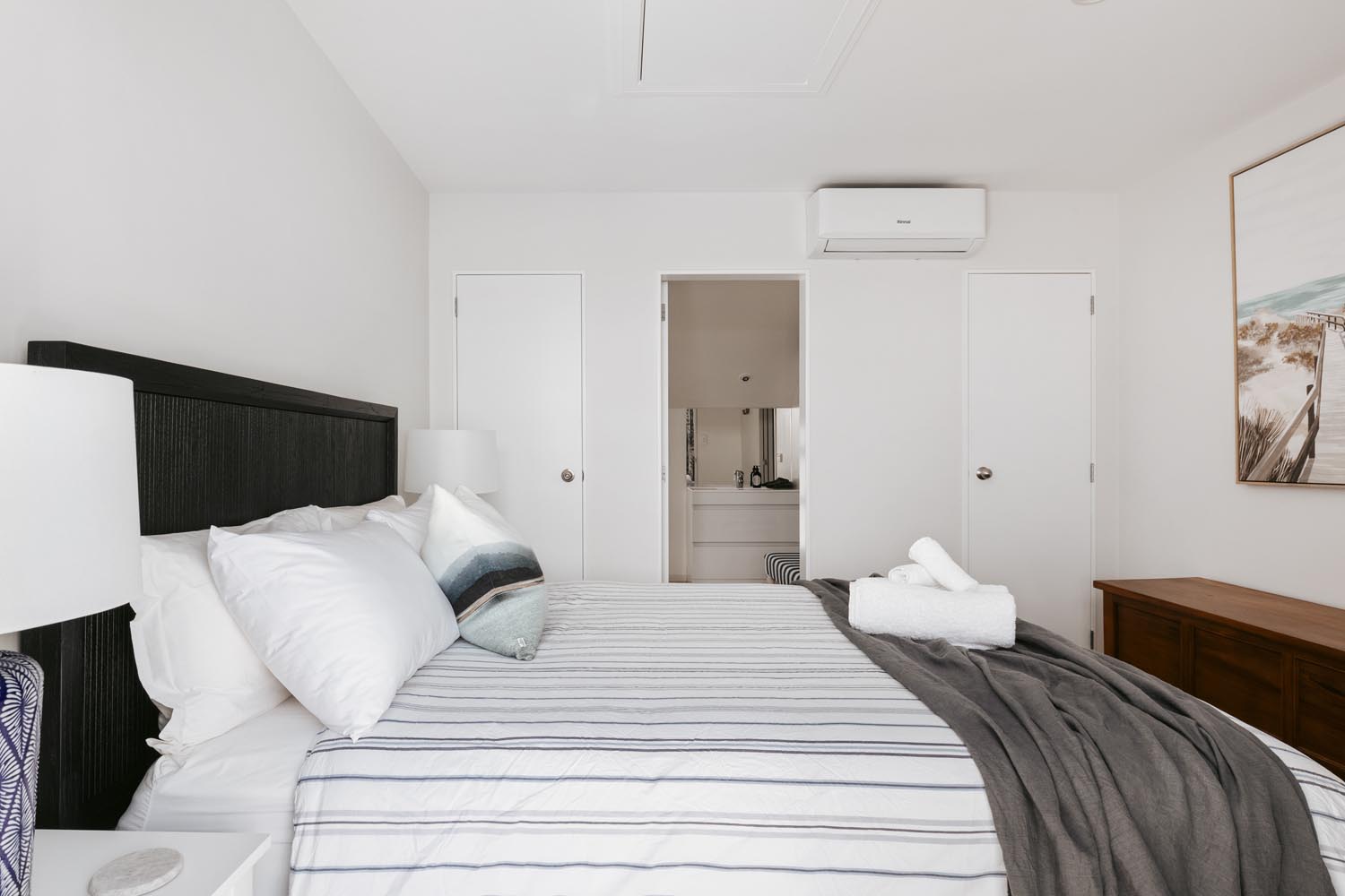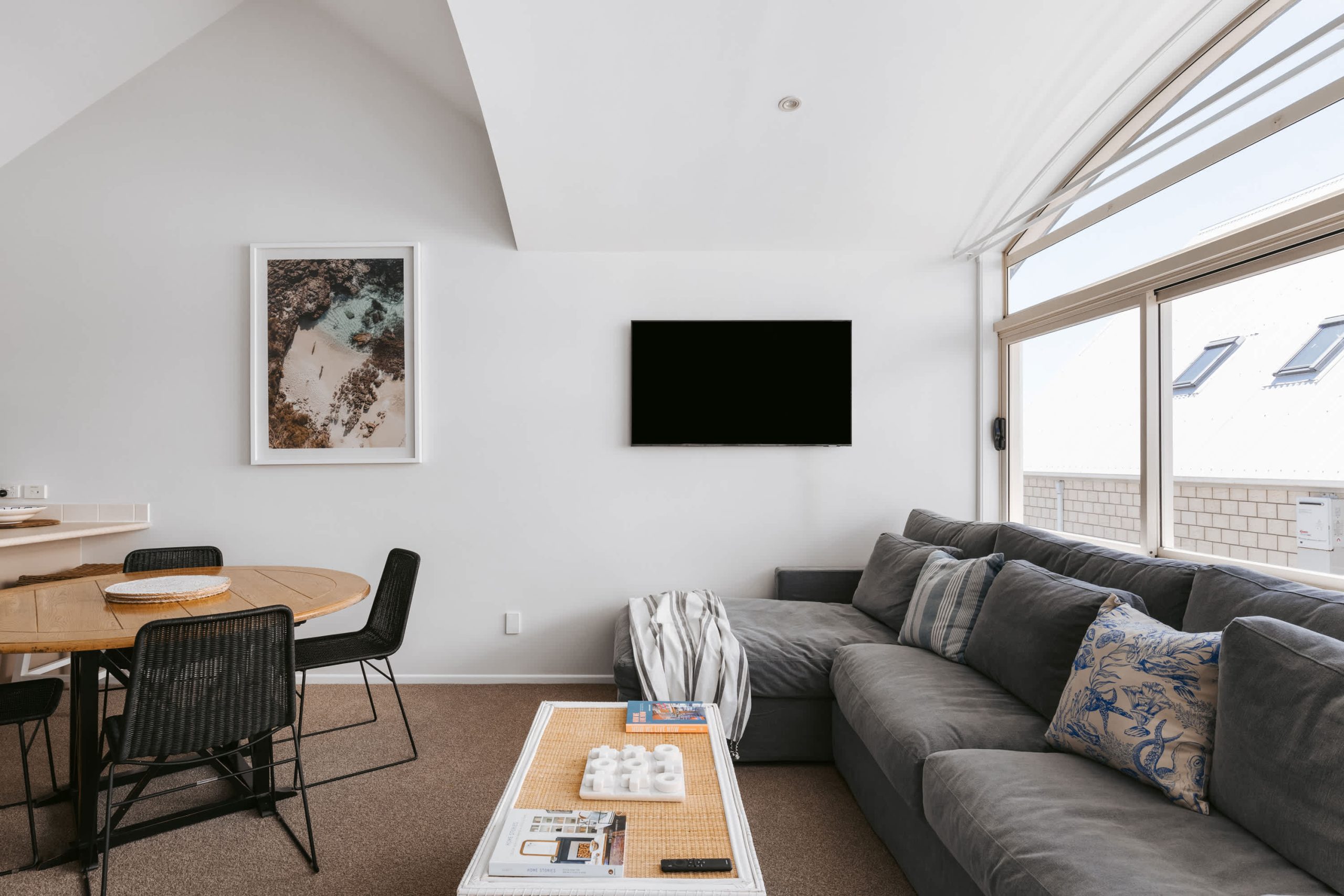 This stylish coastal townhouse is the perfect base for your beach getaway. Upstairs, you’ll find a spacious master suite with an ensuite, along with a bright and airy living area that opens to a sun-soaked deck. Downstairs, there’s a comfortable queen bedroom with a single bed and its own ensuite. Park the car and walk everywhere—stunning beaches, vibrant shops, restaurants, and bars are all just minutes away, with downtown right on your doorstep. The ideal spot for relaxation and convenience.