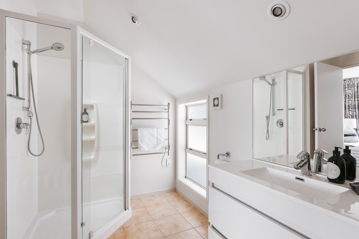 Downstairs: On the lower level, you’ll find a cozy bedroom with a queen bed and a single bed, perfect for families or small groups. This room also has its own ensuite, ensuring convenience and privacy for all guests. For your convenience a washer/dryer is in the garage.