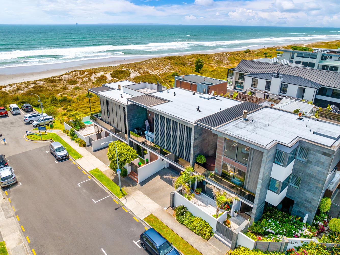 Welcome to a luxurious beachside retreat that defines opulence and relaxation. This stunning three-story townhouse is a haven for holidaymakers seeking an exquisite escape from the ordinary. Nestled on the pristine shores of Mount Maunganui, this resplendent property combines breathtaking ocean views, lavish amenities, and timeless elegance. Upon stepping inside, you’ll be immersed in a world of contemporary elegance and classic comfort. The open-concept living area boasts floor-to-ceiling windows that frame the endless expanse of the ocean. Natural light floods the space, highlighting the pristine marble floors, designer furniture, and tasteful décor. A grand fireplace serves as the focal point, perfect for cozy evenings by the fire.