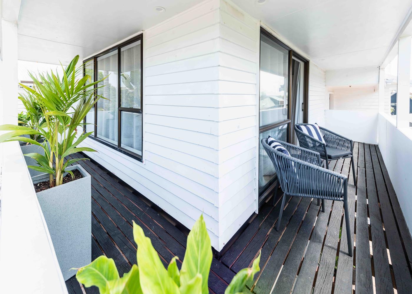 Step outside to your own small private deck — perfect for a morning coffee or evening drink in the fresh coastal air. Off-street parking is available with one dedicated car park, and self-check-in makes your stay smooth and easy.