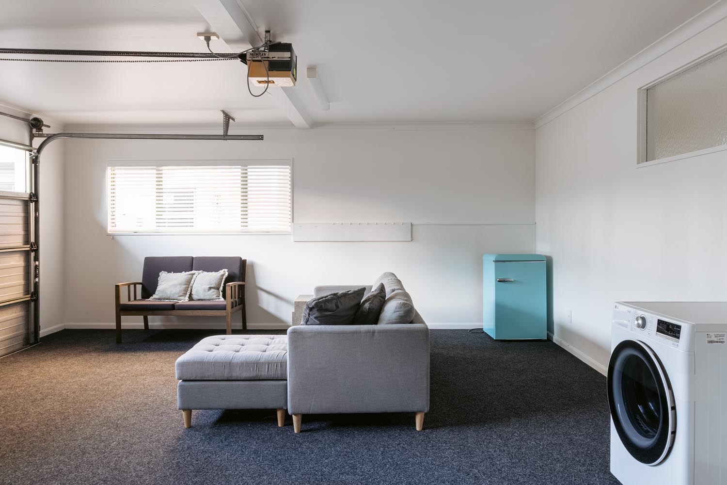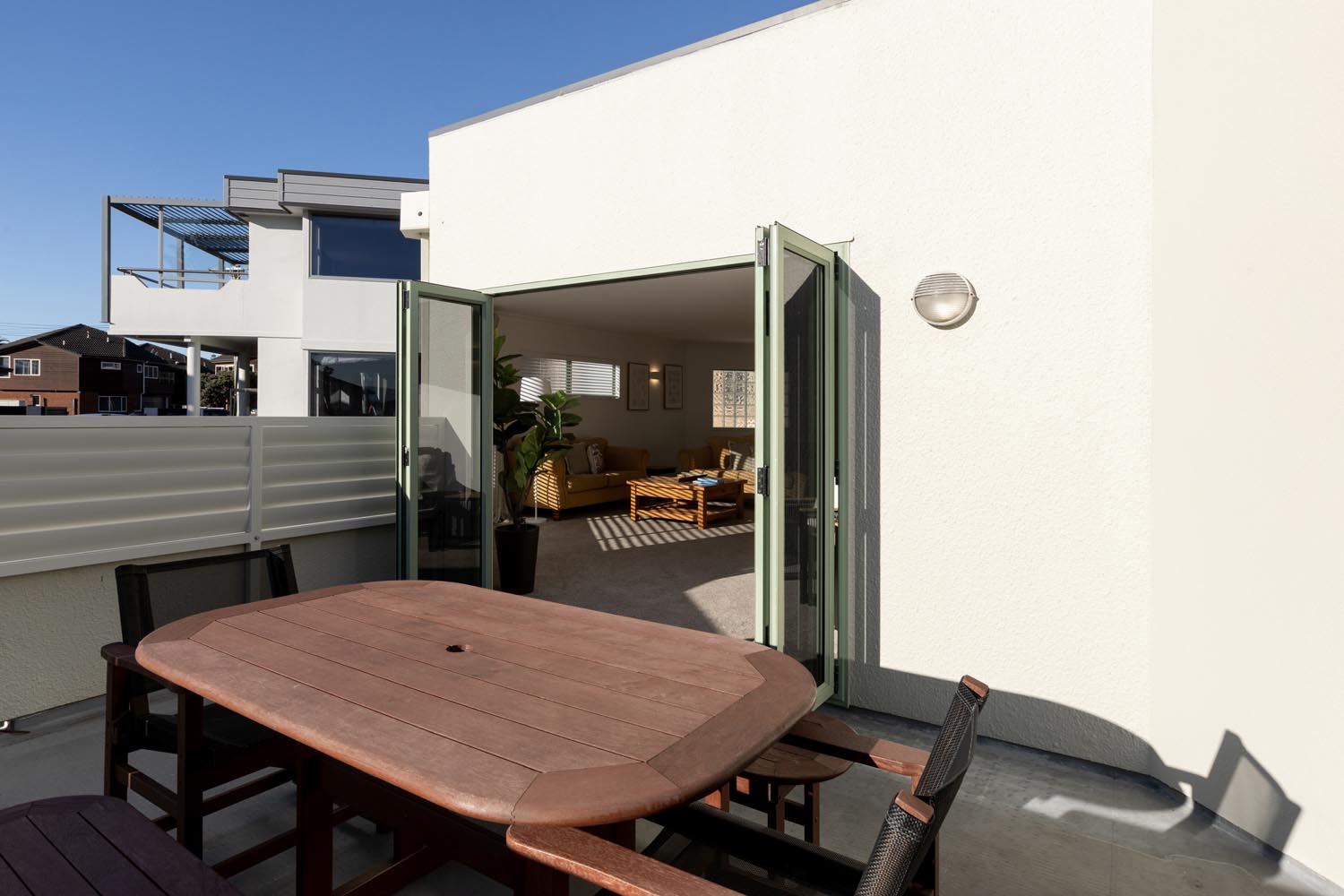 Back at the house, unwind in the generous open-plan living and dining area or cook up a feast in the fully-equipped kitchen. The converted garage offers a second lounge space with comfy couches, a great hangout zone for kids, teens, or casual movie nights. Enjoy Alfresco dining with sea peeps from the balcony and an umbrella for shade in the warmer months.