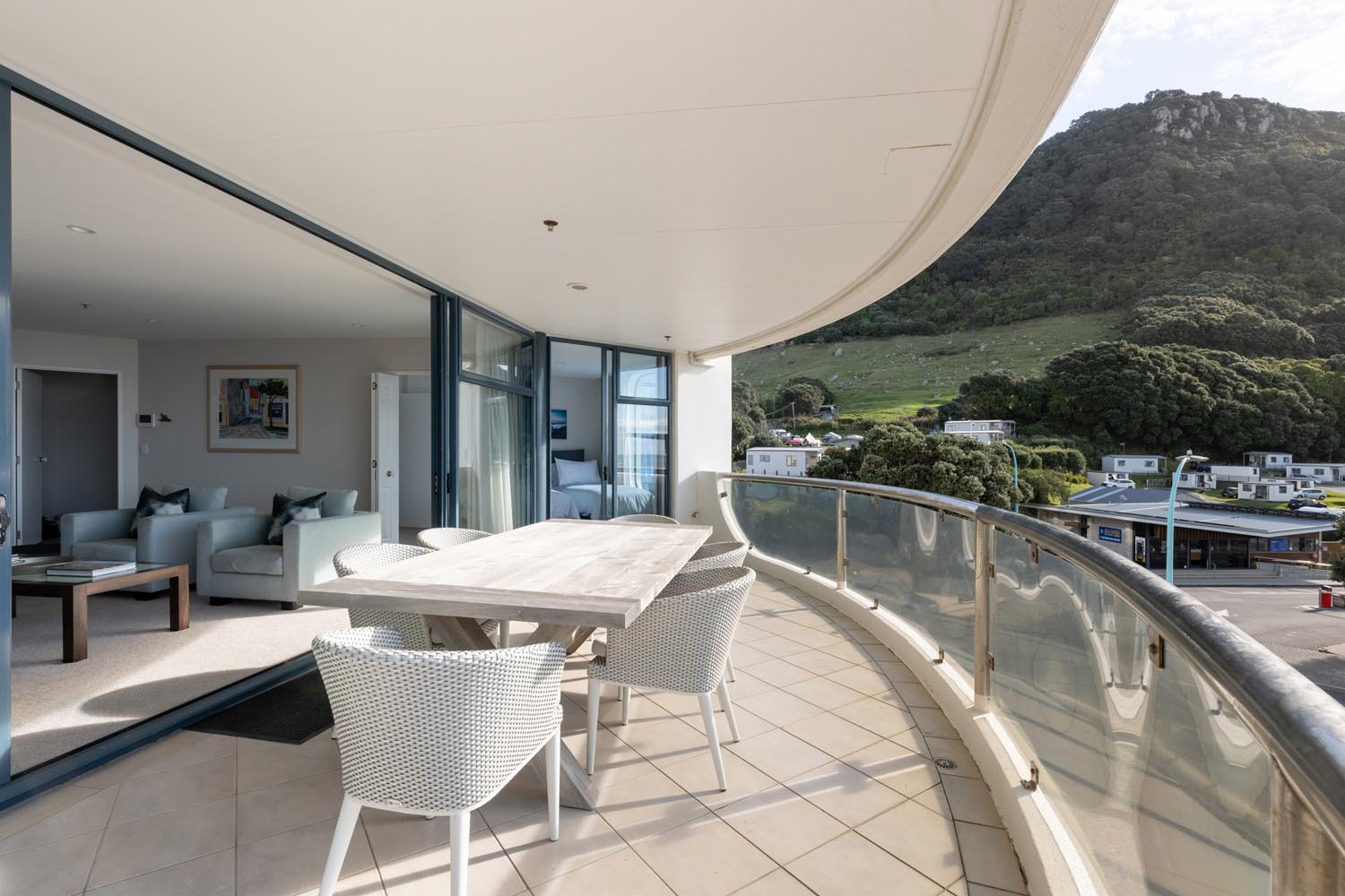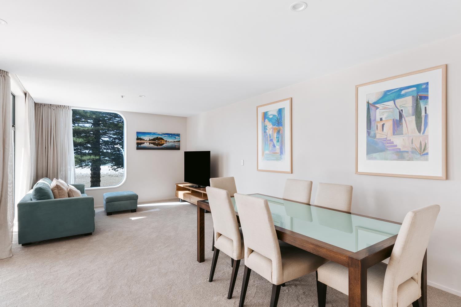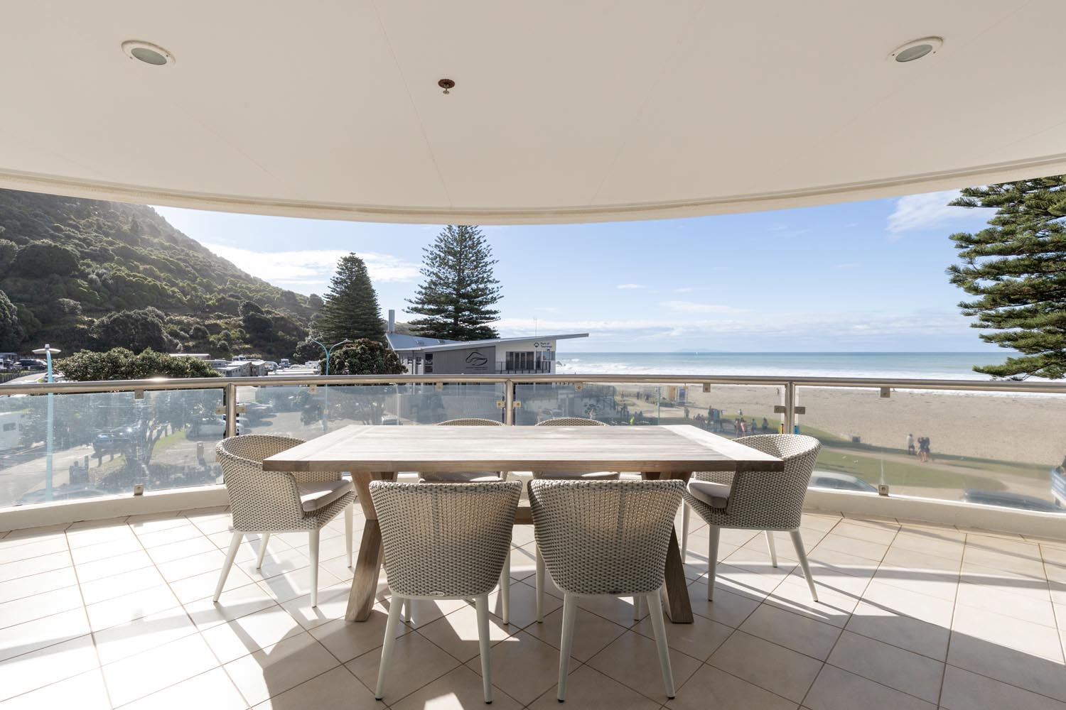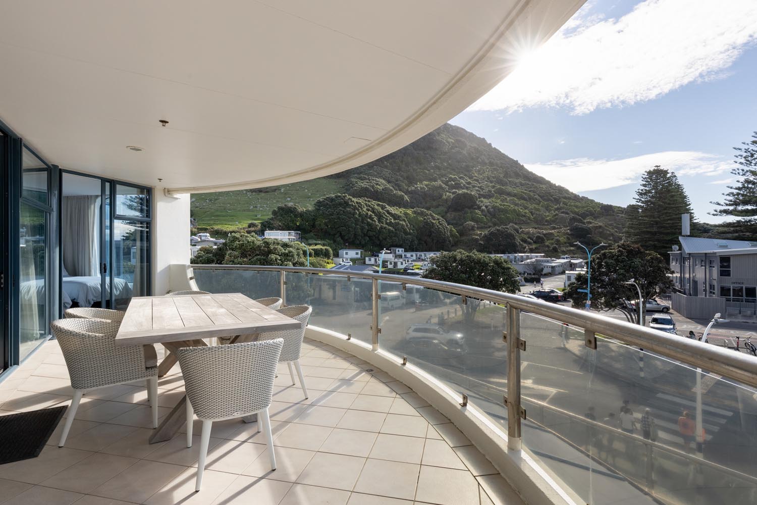 Perched in the heart of downtown Mount Maunganui, this spacious two-bedroom, two-bathroom apartment offers the ultimate base for your coastal escape. Flooded with natural light, the open-plan living area opens to a generous balcony where sweeping views of Mauao and the ocean take centre stage—perfect for morning coffees or evening sunsets.