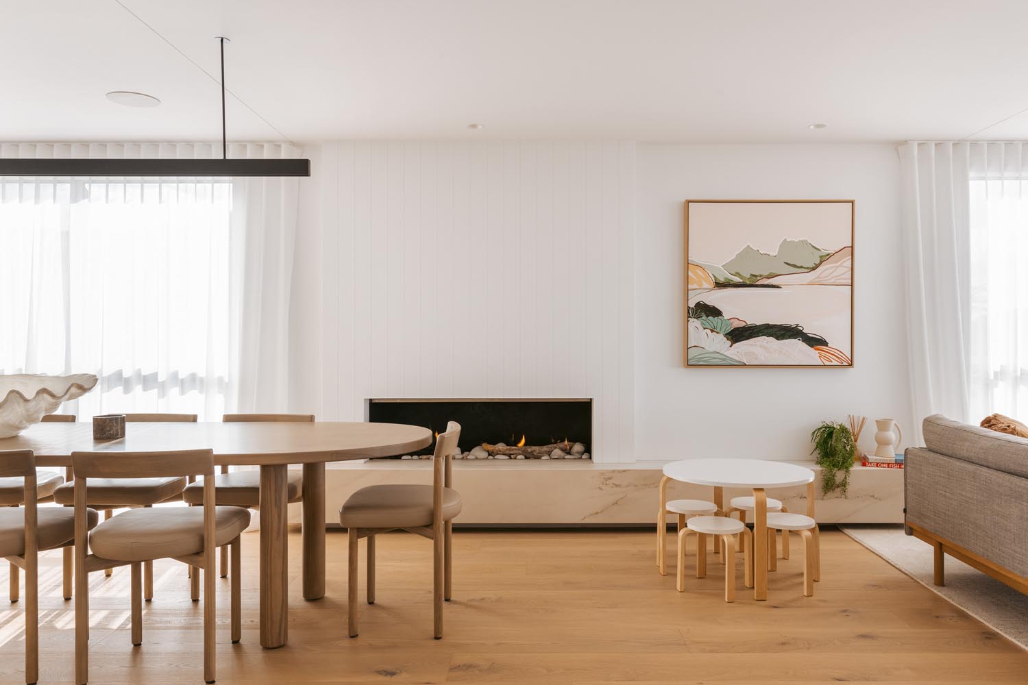 rooms that beckon you to unwind and the living space opens to an expansive deck where you can sit and take in the beautiful ocean panoramas. An outdoor fireplace provides the perfect ambiance, an ideal place to relax with a drink, adding a touch of magic to your evenings. With a state-of-the-art design and ample space in the butler’s pantry, the kitchen offers all the modern conveniences you could need. The easy-to-use home automation system allows you to effortlessly set the mood and environment of the house to your liking. The open-plan dining space enables you to host gourmet meals in style and features a large gas fire, setting the ambience for unforgettable dining experiences.