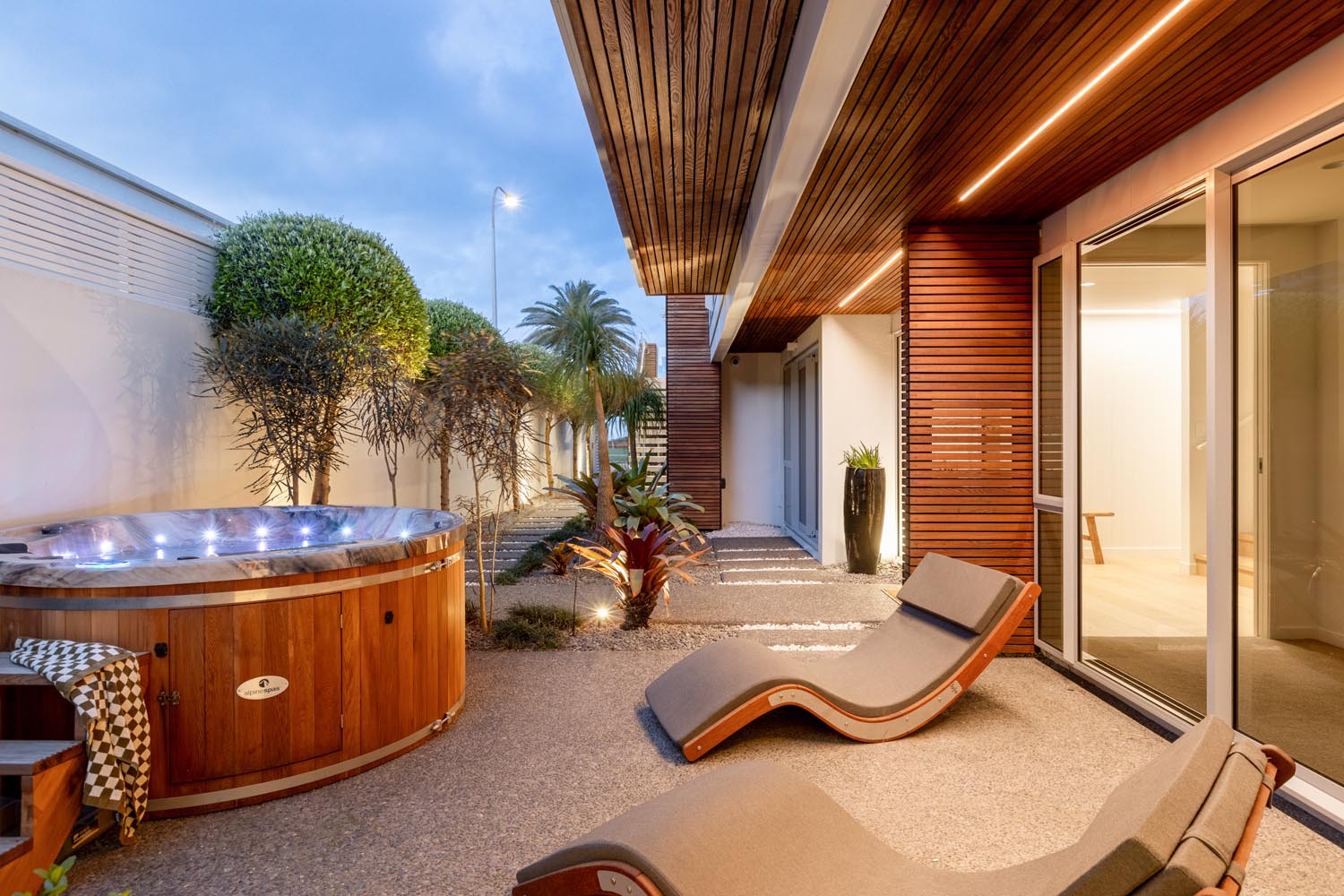 Step outside to find a beautifully appointed spa pool and sauna, further adding to the oasis of relaxation. The games room is thoughtfully equipped with a large TV, table tennis table, darts board and a selection of bikes for exploration, surfboards for thrilling days at the beach and for those eager to explore the surrounding waters, kayaks and paddleboards are readily available, conveniently stored on the exterior of the home. And, when you return from your adventures, the heated outdoor shower provides a refreshing respite. This holiday home truly presents a vast spectrum of entertainment options to ensure that every guest enjoys a