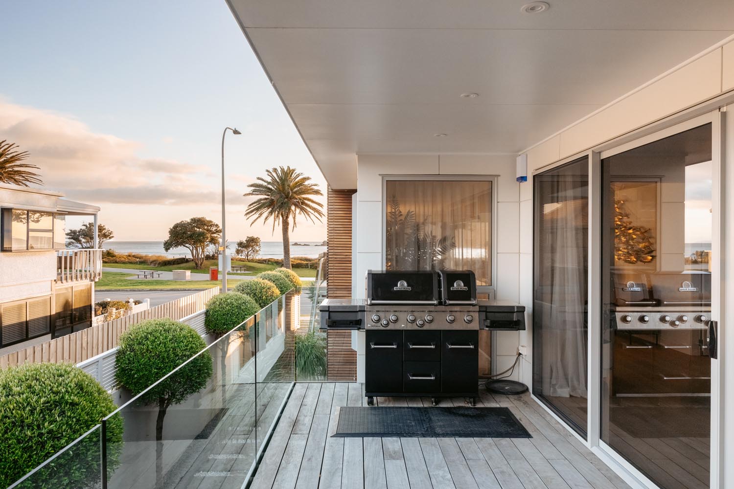 The upper level of this haven is a testament to luxurious living. The master suite is a sanctuary of its own, complete with a walk-in wardrobe, a lavishly appointed ensuite and a ranch slider that opens out onto a small sunny deck. This lovely deck is the ultimate vantage point for views of both the ocean and the Mauao. An additional bedroom and bathroom on this level provide both comfort and convenience. A second living room designed with the young ones in mind, offers a plethora of board games and a large TV for entertainment. This space provides an ideal setting for the younger members of your party to enjoy their leisure time. A ranch slider opens to the small deck, allowing you to cook your barbecue dinners enjoying the summer breeze, all whilst keeping an eye on the kids at play.