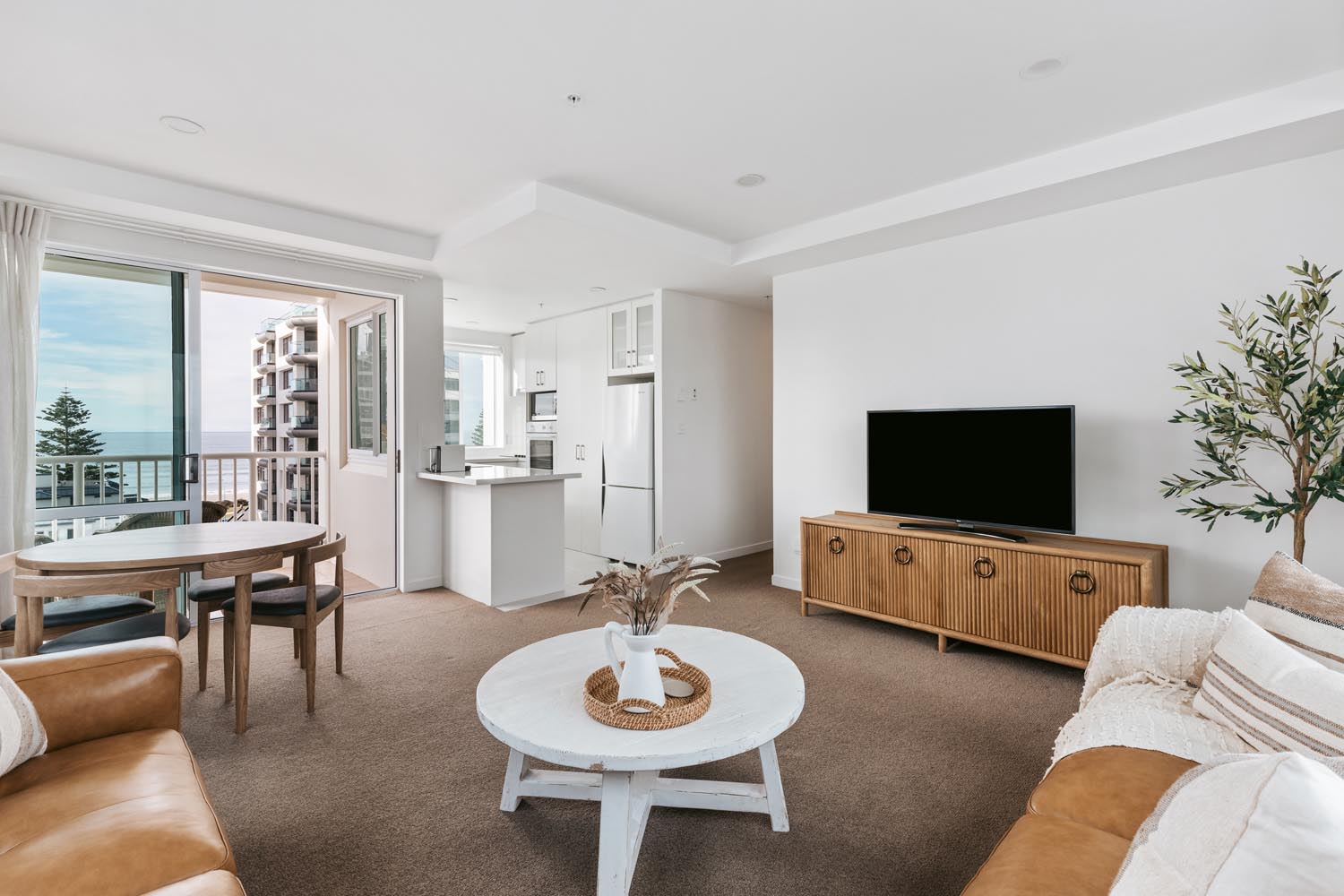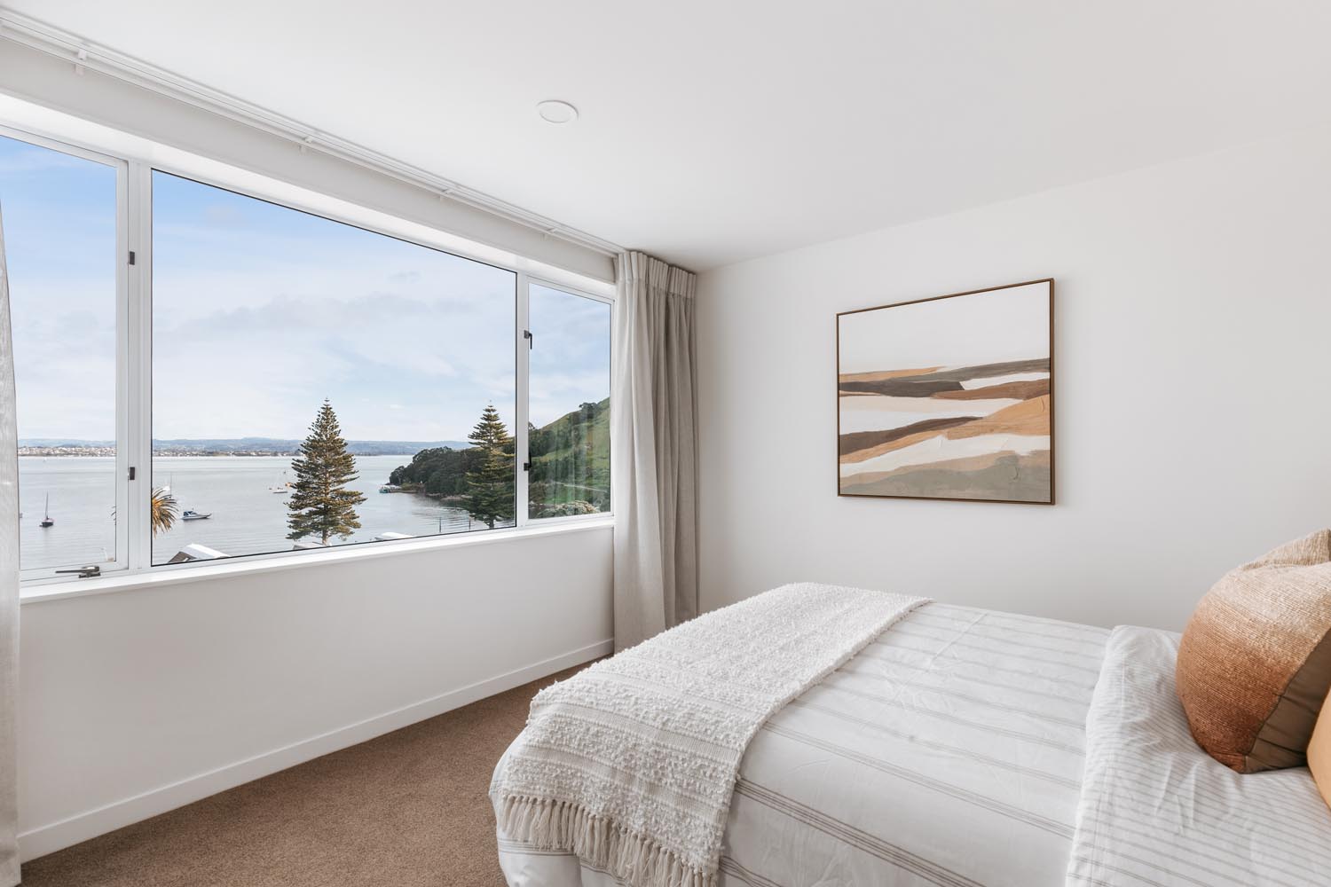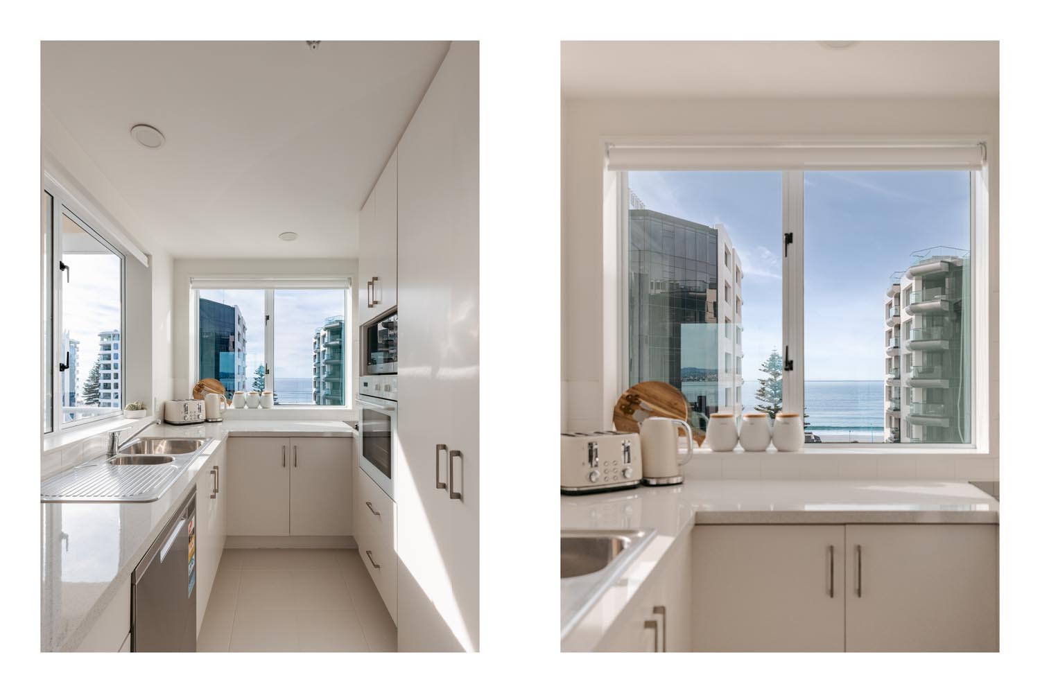 Perched on the 6th floor, this beautifully appointed apartment offers panoramic views of the ocean and harbour from nearly every room. Designed with a relaxed coastal-rustic feel, the open-plan living area flows seamlessly from the modern kitchen to a sun-drenched lounge and balcony—perfect for your morning coffee or sunset wine.