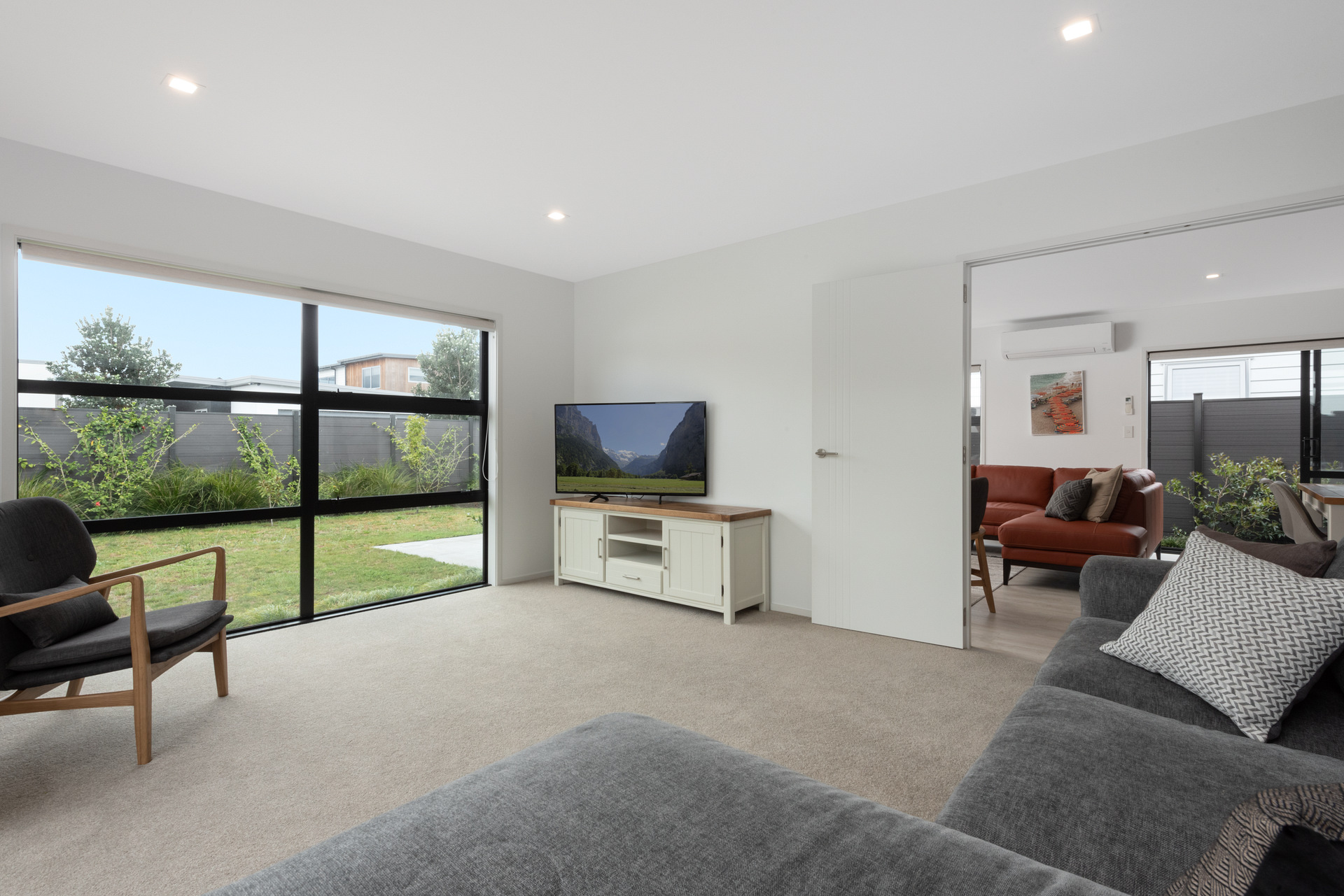 A single level home with off street parking and garage, built only three years ago… super warm and quiet with double glazing and heat pump.