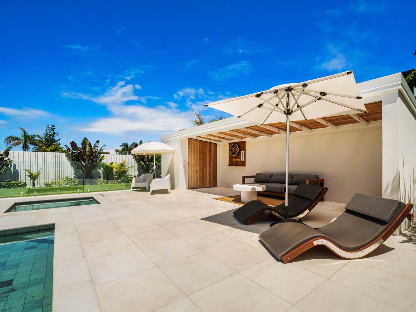 The heart of the home flows seamlessly into a resort-style outdoor oasis, where days unfold between the heated swimming pool, spa pool and generously designed lounging areas. Whether you begin your morning with a quiet coffee by the water or end your evening with a glass of wine beneath the stars, this area invites you to slow down, reconnect and savour your surroundings.
