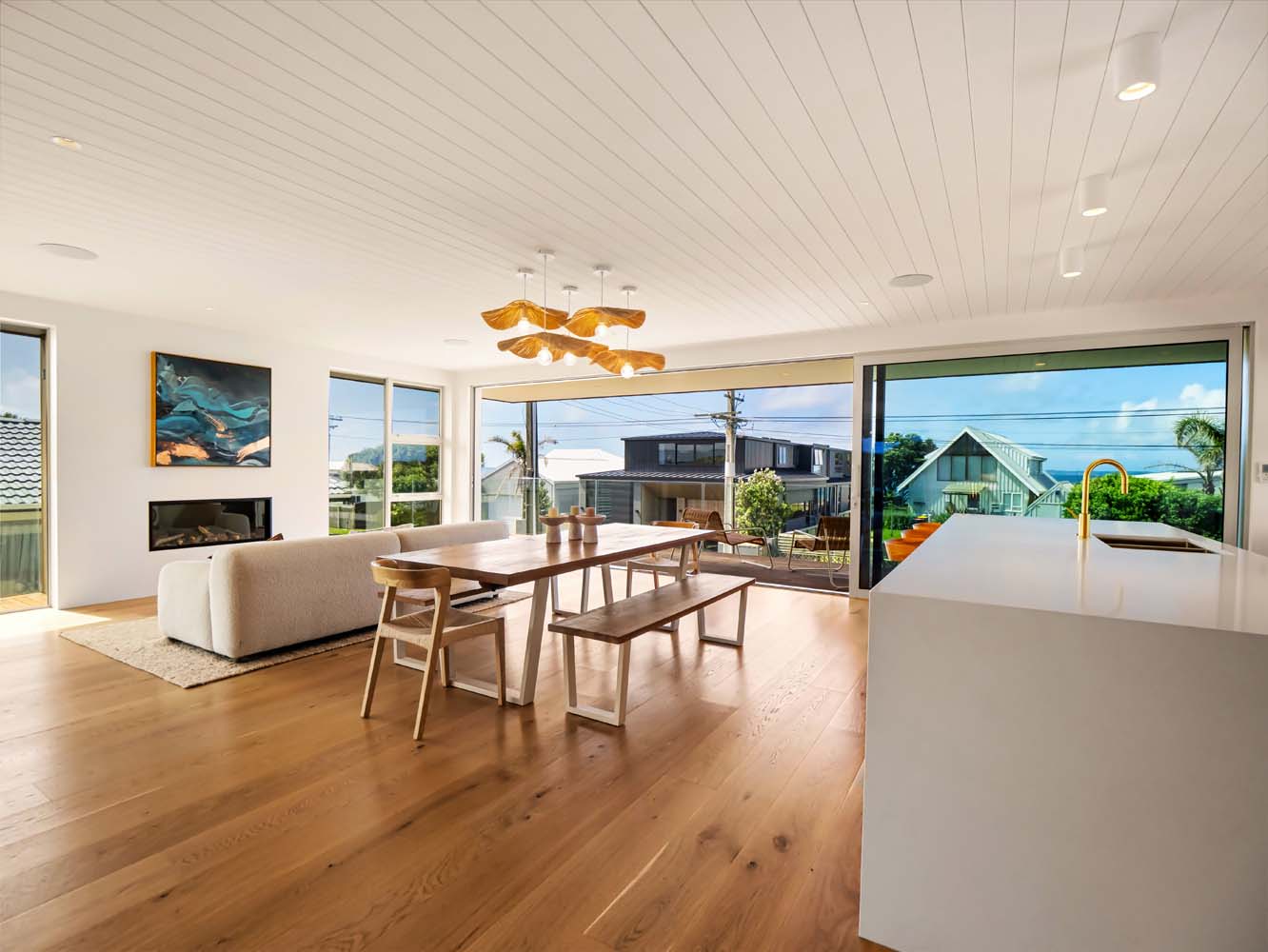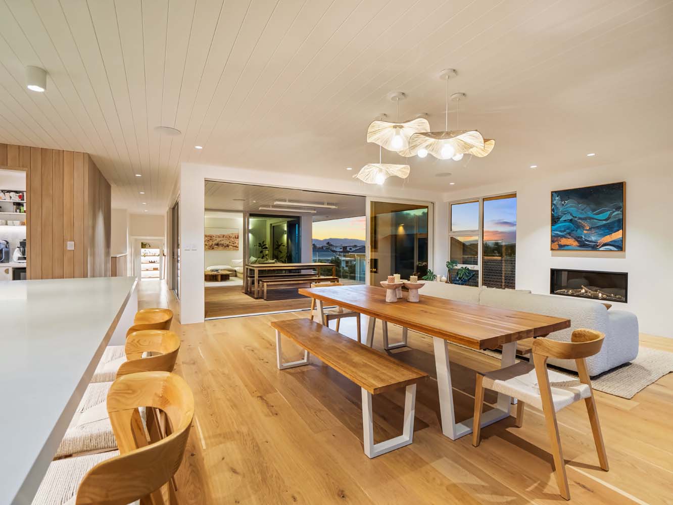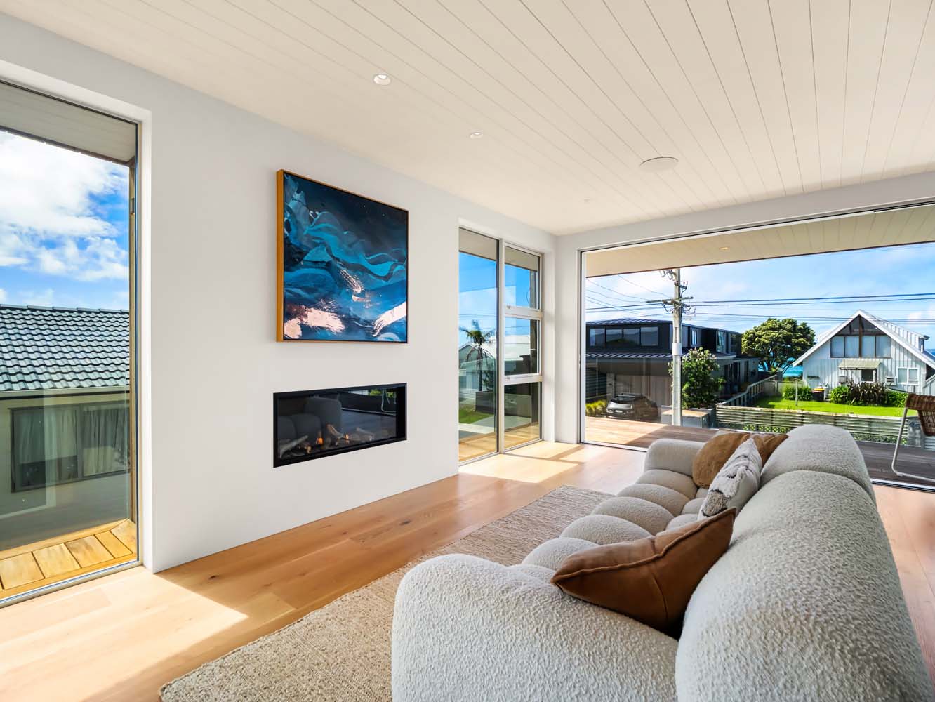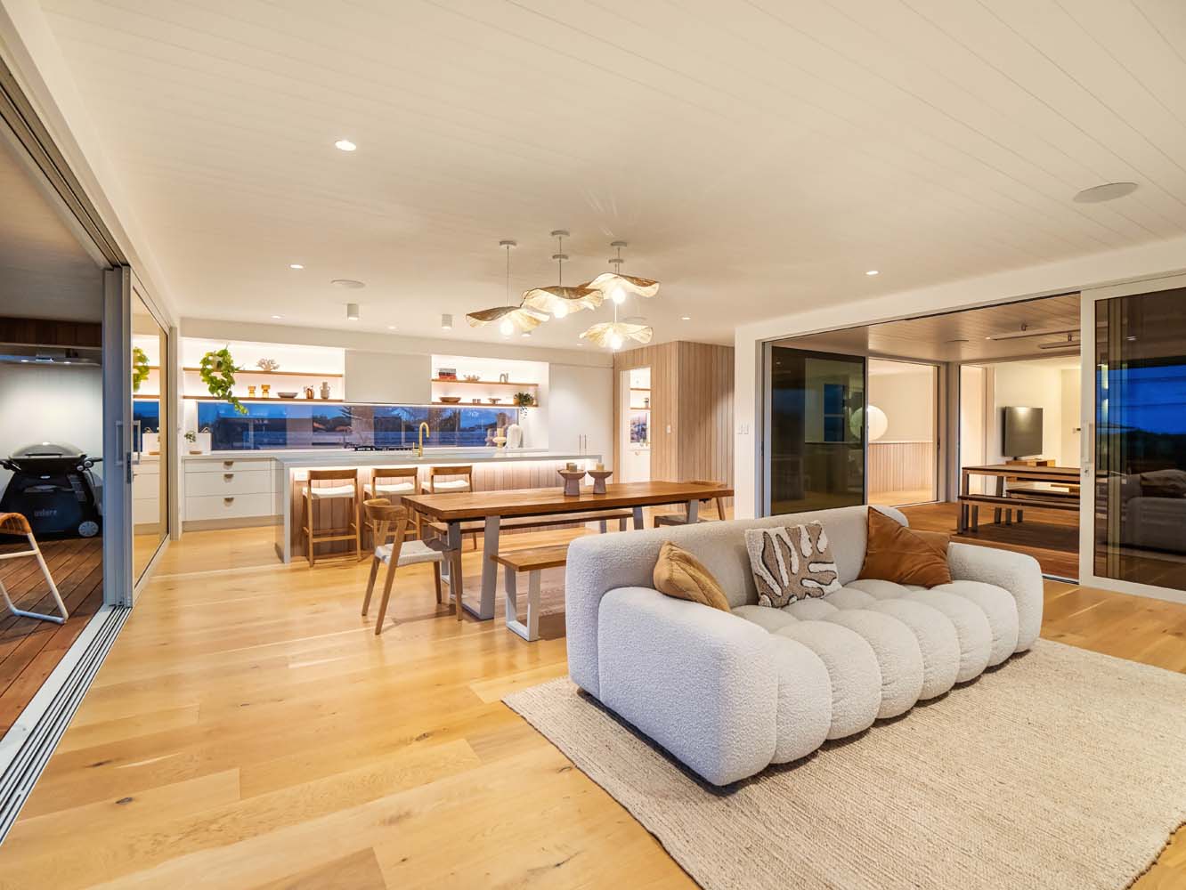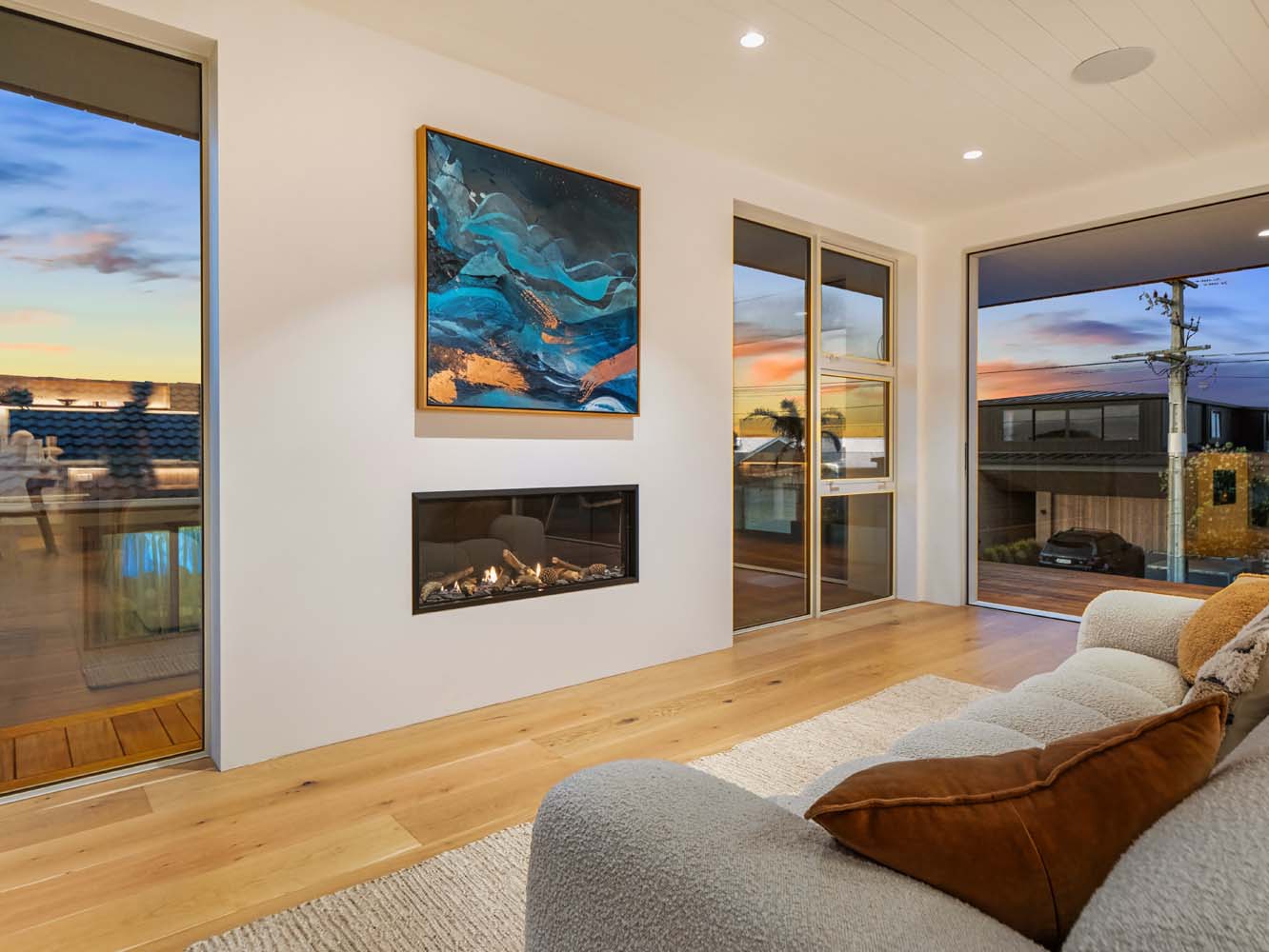 From the moment you step inside, the home envelopes you in a sense of ease. Sun-filled spaces open gracefully toward the outdoors, while soft coastal tones, quality furnishings and thoughtful details enhance every room. Zoned air conditioning ensures perfect comfort throughout the seasons, and the gentle glow of the Escea gas fire adds warmth and atmosphere on cooler evenings.