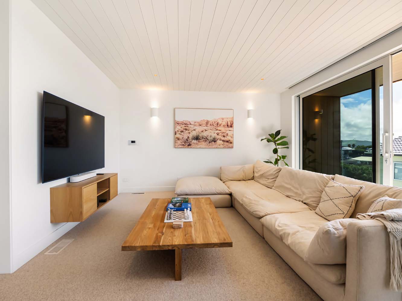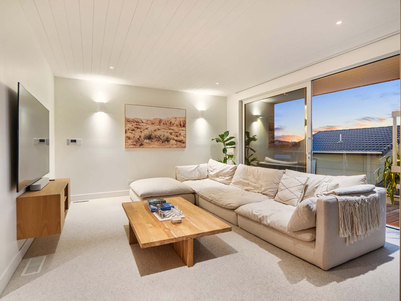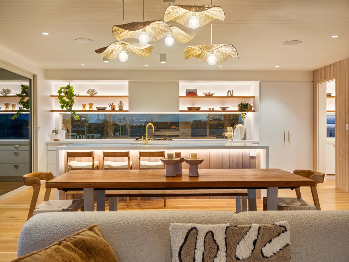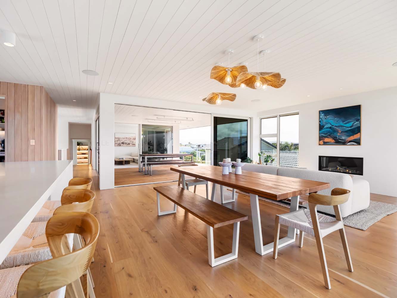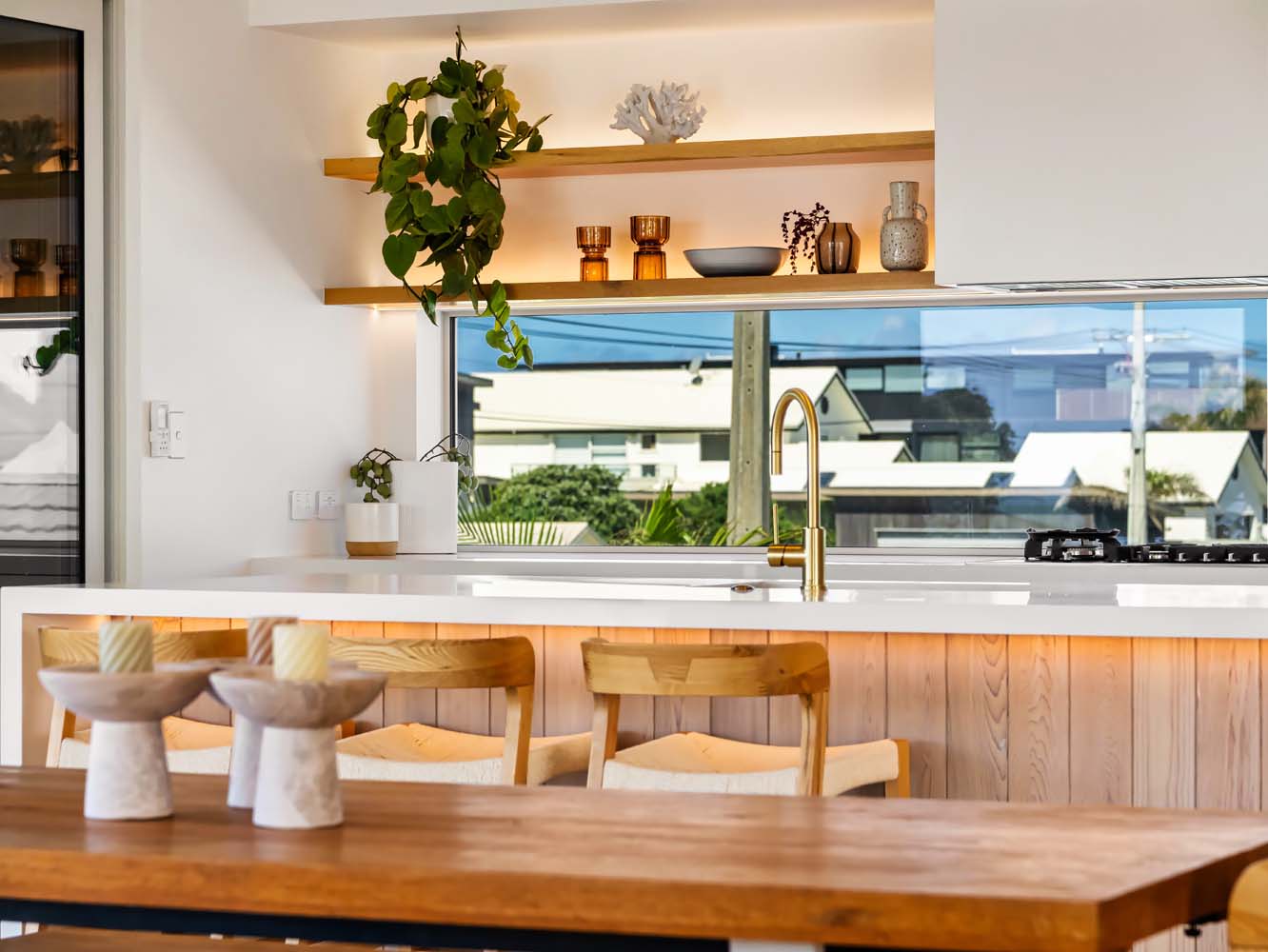 From the moment you step inside, the home envelopes you in a sense of ease. Sun-filled spaces open gracefully toward the outdoors, while soft coastal tones, quality furnishings and thoughtful details enhance every room. Zoned air conditioning ensures perfect comfort throughout the seasons, and the gentle glow of the Escea gas fire adds warmth and atmosphere on cooler evenings.