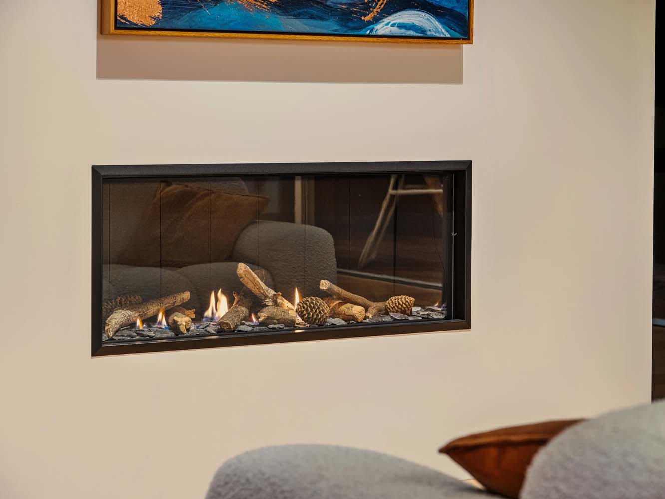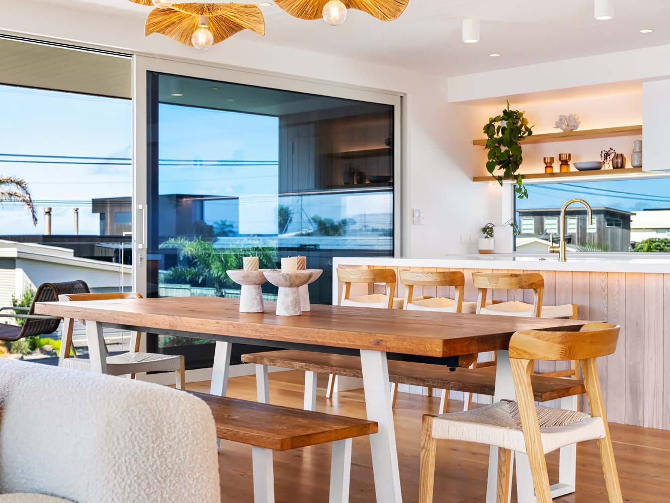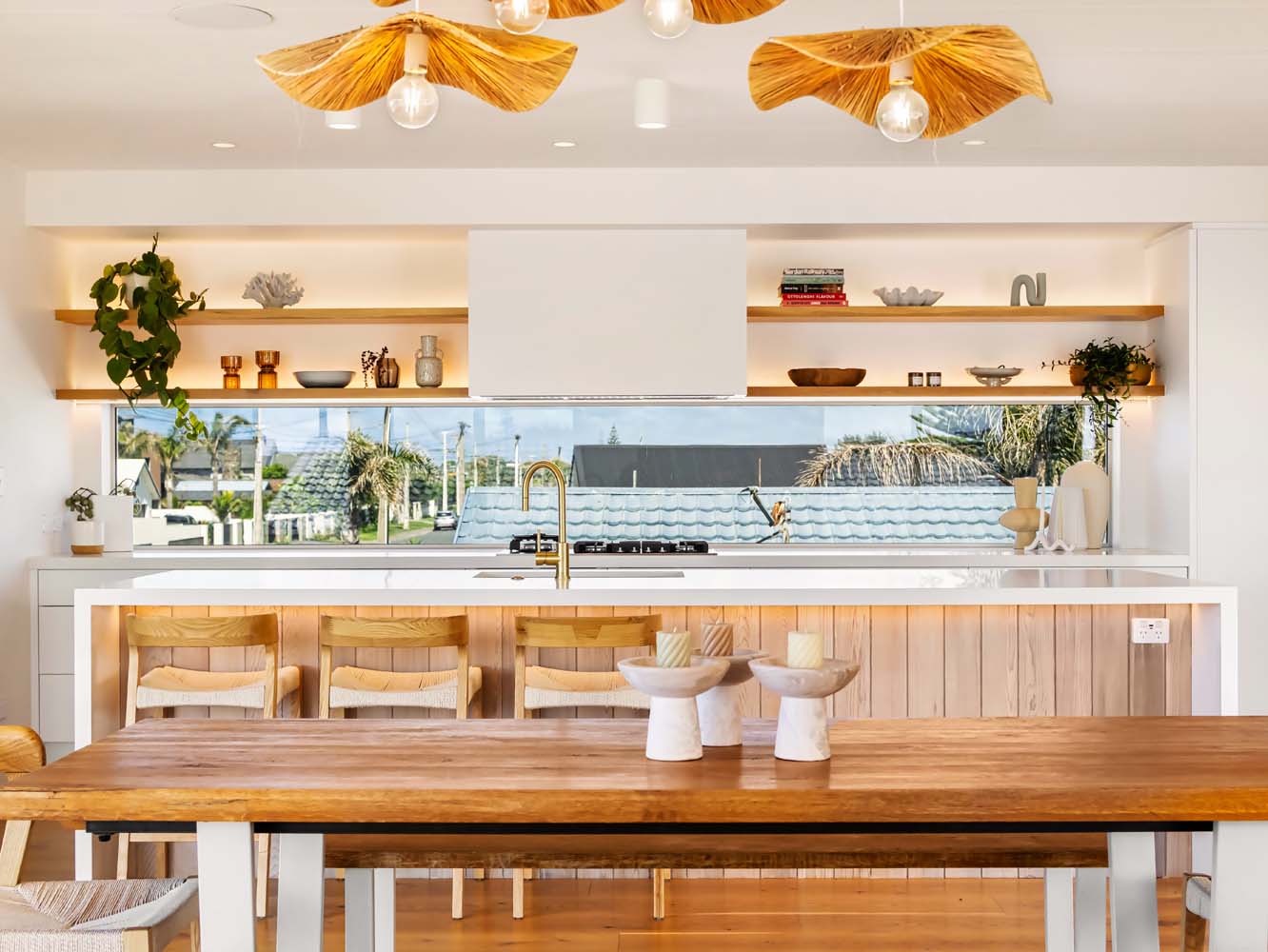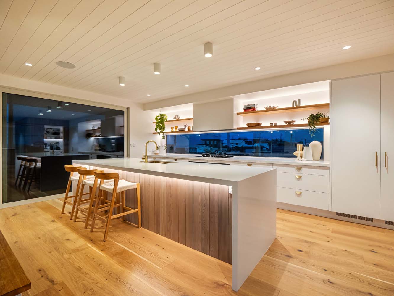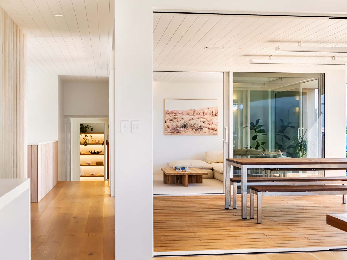 From the moment you step inside, the home envelopes you in a sense of ease. Sun-filled spaces open gracefully toward the outdoors, while soft coastal tones, quality furnishings and thoughtful details enhance every room. Zoned air conditioning ensures perfect comfort throughout the seasons, and the gentle glow of the Escea gas fire adds warmth and atmosphere on cooler evenings.