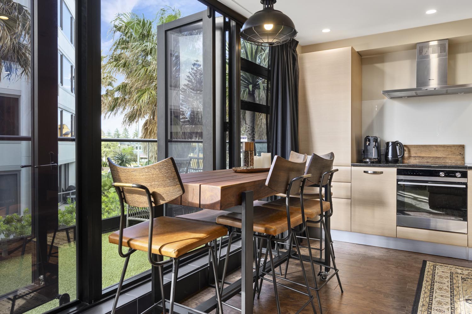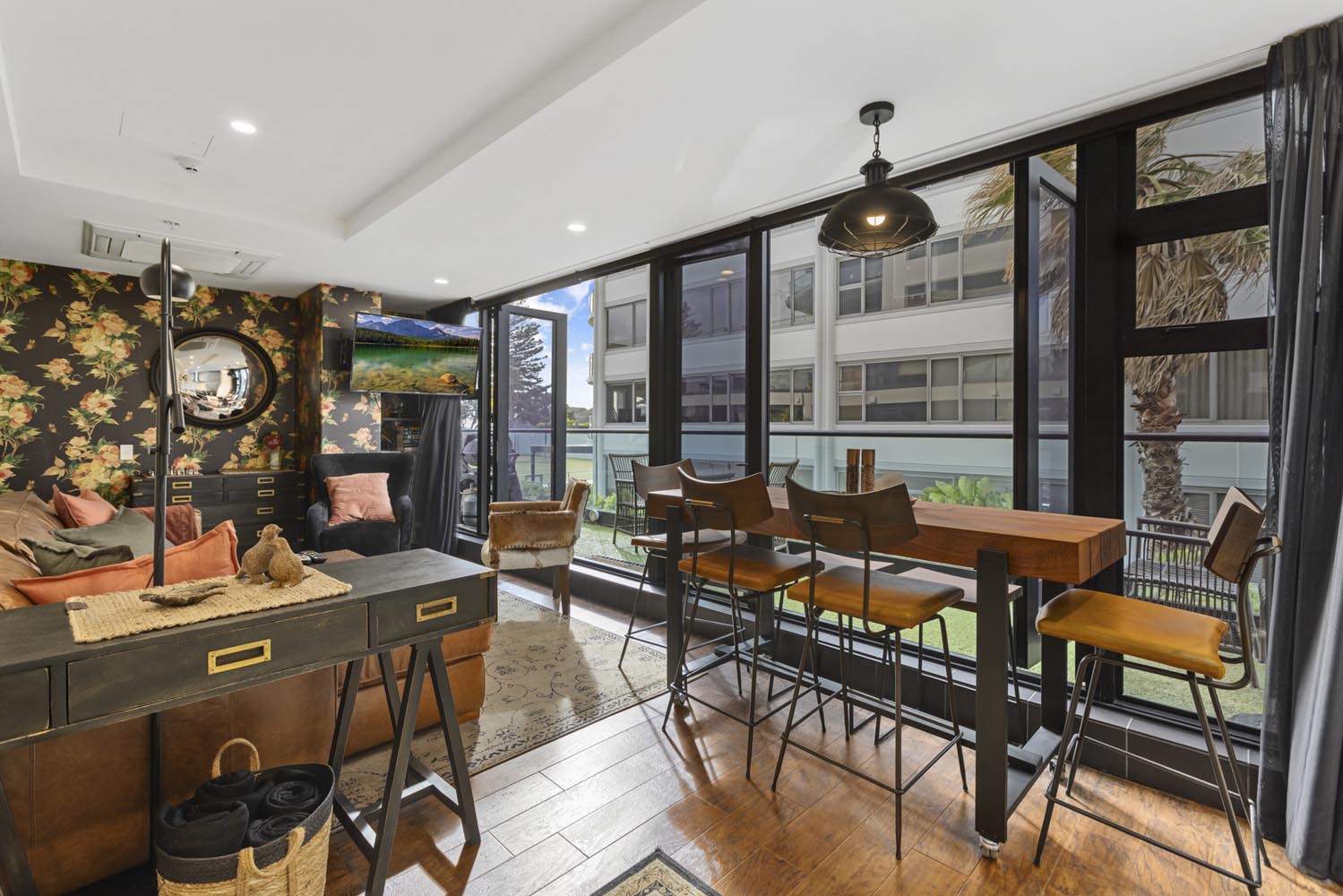 A marvellous split-level apartment, conveniently located in the heart of the Mount. Direct access to the main beach, popular cafes and Mauao and just a few minutes’ walk to downtown shops, restaurants and bars, this is the perfect location. The incredible kitchen is equipped with everything you need for cooking at home, including a Nespresso coffee machine. With one secure car park space, handy Gym, heated pool and spa this stylish apartment will provide the perfect space to unwind and recharge.