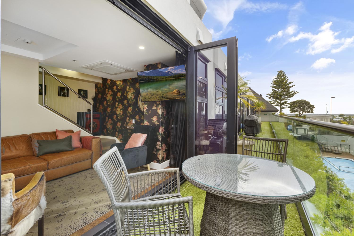 The private gym and beach access is at ground level. From here you can stroll around or up Mauao and/or enjoy a coffee at one of the many popular cafe’s. A handy dairy and the hot pools are just across the street.